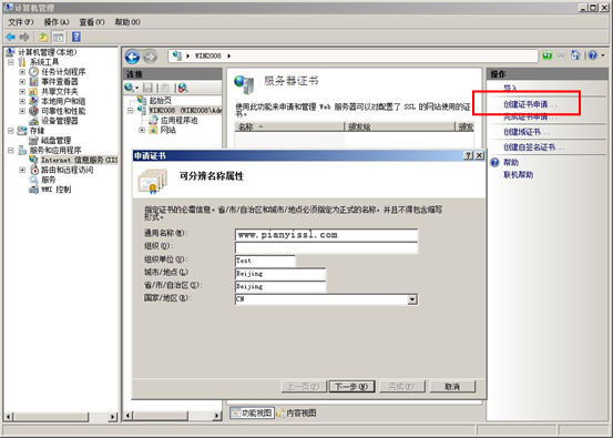 Windows IIS7.0上安装服务器证书